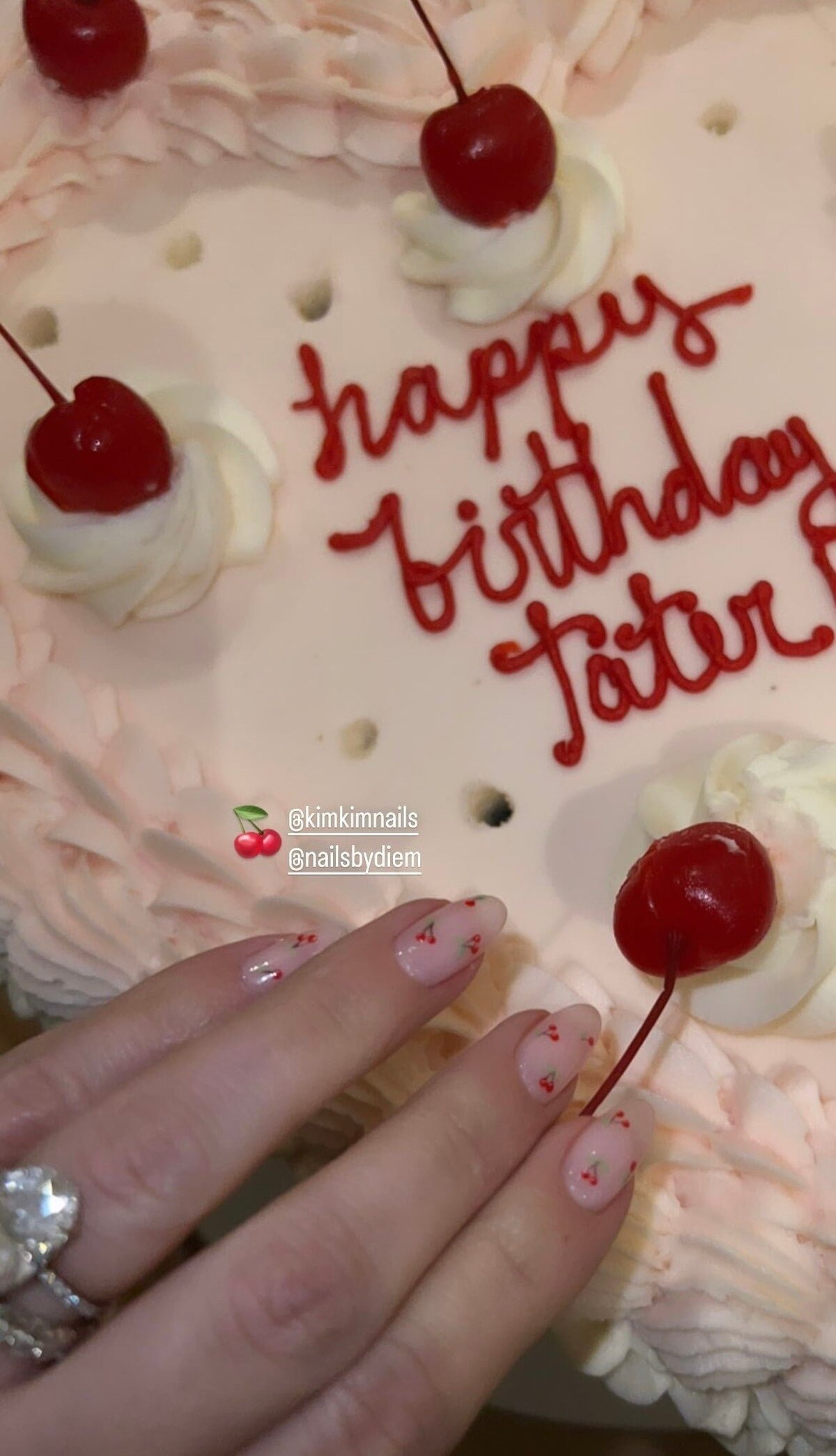 Kardashian a împărtășit câteva prim-planuri ale manichiurii adorabile pe Instagram Stories ei joi dimineața devreme după ce a sărbătorit ziua de naștere a prietenei sale Atiana De La Hoya. Ea a modelat-o alături de una dintre cele trei prăjituri – aceasta s-a întâmplat să fie acoperită cu cireșe, la fel ca unghiile ei.